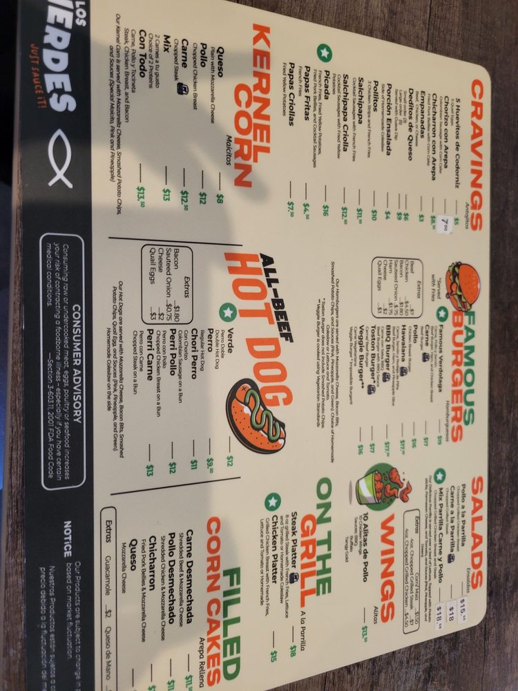 Los Verdes Menu (Update 2025)